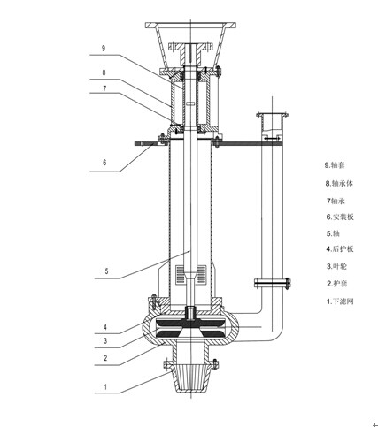 ZJL型液下渣漿泵 立式液下渣漿泵由石家莊天工泵業有限公司生產。ZJL液下渣漿泵主要由葉輪、護套、后護板、軸套、支架、支撐板、軸、軸承、軸承體等零件組成。葉輪、護套、后護板的材質為高鉻合金鑄鐵,葉輪與軸采用螺紋聯接,護套、支架、軸承體用螺栓聯接。泵軸與電機可采用聯軸器直接傳動或皮帶傳動。ZJL型渣漿泵的軸承采用油脂潤滑。該系列泵為無軸封泵。